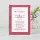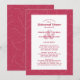 Magenta red modern wedding rehearsal dinner invitation design features an artistic botanical leaves pattern on a trendy magenta background. Bold calligraphy and script are in magenta on a white background and feature the couple's first and last names artfully positioned over a larger coordinating ampersand. A trendy template complements the unique design. The back of the card repeats the leaf pattern. For best results replace template details with your own information leaving space between paragraphs as in the example and use all capital letters where specified. E-mail invitationsuites@gmail.com with questions or use the message link for custom colour requests.