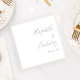 These simple, modern wedding napkins feature dusty lavender text aligned to the right margin on a white background. Add the names of the bride and groom in stylish handwriting calligraphy.