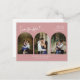 Take a look at this elegant modern minimal Save the Date three (tri) arch photo collage postcard that you can announce to your family and friends that you're getting married! This beautiful magnet features a stunning and beautiful handwritten script calligraphy font and heart paired with a classic serif font in a dusty pink background for a truly timeless look. It's perfect for your wedding theme! Customize the names and replace the photos with yours and the month, day, and year (two digits), your QR Code, and wedding website URL to give your save the date announcement postcard a nice personal touch. Please note: The "Save the Date" wording and heart cannot be edited, changed, or deleted. You can customize and personalize the postcard to fit your wedding event needs.