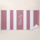Personalized Modern Pink Dusty Rose Striped Beach Towel.