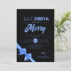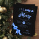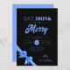 Modern Eat, Drink Be Merry Xmas Blue Ribbon Black Invitation