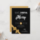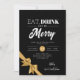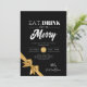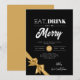 Modern Eat, Drink Be Merry Xmas Gold Ribbon Black Invitation