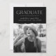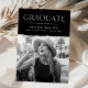 Celebrate your graduate's exciting milestone with these modern photo graduation announcements! The design features "Graduate" at the top in white modern lettering with a black torn edge bordering the graduate's senior photo. Personalize the announcement by adding the graduate's name, school name, and graduation year. The card reverses to display a textured black and white striped pattern.
