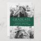 Celebrate your graduate's exciting milestone with these modern graduation announcements! The two photo graduation announcement features "Graduate" at the centre of the design in white modern lettering and green background with torn edges. Personalize the announcement by adding the graduate's name, school name, and graduation year. The card reverses to display a textured green and white striped pattern.