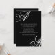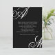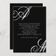 A chic modern design with an edge, this wedding invitation features bold monograms of the bride and groom on alternate corners. Replace the sample text with your information. You may move your initials slightly left or right to accommodate their best display in this design format. The monograms look best when they run slightly off the edges. Change any wording on the invitation to suit your personal style and preferences.