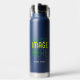 MODERN EDITABLE CUTE NAVY BLUE IMAGE TEXT TEMPLATE WATER BOTTLE
