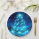 Modern Electric Blue Christmas Tree with Lights Paper Plate