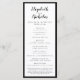 Modern Elegance Black and White Wedding Program features the couples’ names in beautiful calligraphy surrounded by a minimal black border. Personalize with your wedding ceremony details. This design is available in a variety of formats and accompanying wedding invitation and event products.