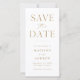 Announce your wedding date with this stylish, modern photo save the date card. The design features "Save the Date" on the front in gold serif and script fonts with a white background. Personalize the minimalist save the date announcement by adding your names, date, and wedding location. The card reverses to display your favourite engagement photo. The simple save the date announcement is perfect for any wedding theme.