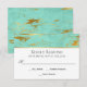 A luxurious wedding RSVP design in a mint and gold abstract marbled pattern. The contemporary text style has generous white space with lovely font pairings of script and serif text that add tasteful style.