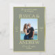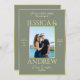 Beautiful, double sided, modern, trendy elegant photo wedding invitation. With a pretty sage colored background with a shiny gold border...sophisticated and fashionable colors suitable for any season. Unique wedding design in romantic sage and gold colors. Simply change the example photo for your own to create your personal unique invitation for your special day. All text, font and font color is fully customizable to meet your requirements. QR-CODE can be applied for additional information. If you would like help to personalize/customize your product, please contact me through my store and i will be very happy to help you. Beautiful chic, classy and stylish wedding design.