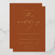 Minimalist, modern wedding invitation featuring your wedding details with "the wedding of" in an elegant gold foil calligraphy script. The terracotta background can be changed to a colour of your choice. Designed to coordinate with our Modern Elegance wedding collection.