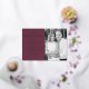 Modern photo wedding invitation featuring your wedding details on the left of the design in gold foil lettering with calligraphy script accents on a wine background. Personalize the front of the invite by adding your names, wedding details, and vertical engagement photo. The back of the invite provides space for additional text and photos. Designed to coordinate with our Modern Elegance foil wedding collection.