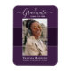Beautiful 1 photo graduation announcement magnet. Featuring modern text with elegant calligraphy script in white on shades of purple. To see more items like this, visit my store here at "www.Zazzle.com/LakeViewCardCo". Thanks