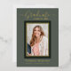 Beautifully elegant 1 photo graduation announcement cards. Featuring modern text with calligraphy script in your choice of gold, silver or rose foil. Your photo is also thinly edged in a double foil trim. The design is complimented with a background in shades sage green. The back of the card offers a personalized announcement text space for that special graduate. To see more items like this, visit my store here at "www.Zazzle.com/LakeViewCardCo". Thanks