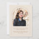 This beige simple minimalist arch graduation announcement features a delicate arch frame, 2 photo templates and elegant modern typography.