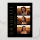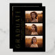 Celebrate your graduation with this Modern Elegant Black 4 Photo Graduation Party Gold Foil Invitation. This chic and trendy invitation features four of your favourite photos in black and gold with a touch of gold foil accents that add a touch of sophistication to the design. The elegant font adds a modern and stylish touch to the overall design. Perfect for high school or college graduation parties, this invitation is customizable and can be printed on a variety of paper types to fit your style and budget.