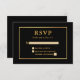 Modern Elegant Minimalist Black and Gold Wedding RSVP card. Gold Frame.