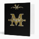 Modern Elegant Black and Gold Monogram Custom Name Binder
