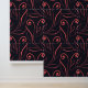 Modern & Elegant Black And Pink Foliage & Swirls Wallpaper