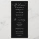 This sophisticated wedding program features elegant white calligraphy set against a striking black background, creating a timeless and modern look for your ceremony. Customize it by adding your names, wedding date, and ceremony details in bold white lettering, ensuring your guests stay informed throughout your special day. The program reverses to display the names of your bridal party, adding a personal touch to your celebration. With its simple, elegant, and modern design, this wedding program is perfect for both formal and casual weddings in any season, elevating the elegance of your wedding day from start to finish.