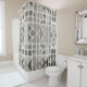 Elevate your bathroom with this stunning black and white geometric shower curtain.