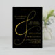 This luxury modern elegant wedding invitation features REAL GOLD FOIL for the Ampersand and names of the bride and groom, with black background.