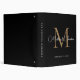 Modern Elegant Black Gold Calligraphy Monogram 3 ring binder