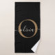 Modern Elegant Black Gold Monogram Script Name Bath Towel Set