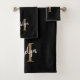 Modern Elegant Black Gold Monogram Script Name Bath Towel Set