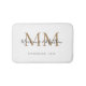 Modern Elegant Black Gold Newlywed Monogram Name Initial Script Bath Mat. Personalize with your monogram name, initials and date. Perfect bathroom decor and home decor gift idea for newlyweds.