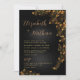 The Modern Elegant Black & Gold Quote Floral Wedding invitations boasts a luxurious black and gold palette, with a stunning golden floral pattern and modern typography set against a black background, exuding elegance and sophistication. The back side features your favourite quote of marriage and love.