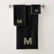 Modern Elegant Black Gold Script Name Monogram Bath Towel Set