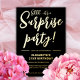 Introducing a new modern, elegant adult surprise birthday party invitation featuring black background with gold foiled handwritten typography text that says "shh! it's a surprise party". Customize this template card by adding your own party information.