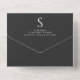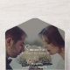 AVAILABLE WITH OR WITHOUT A QR CODE TO SCAN IN THE RSVP AREA OR WITH OR WITHOUT DINNER OPTIONS. This design is simple yet elegant, complete with the groom or bride's last initial on the outside flap. A transparent black overlay covers the photo you add. Also add a customized QR code to your invitation so that gusts can quickly access your wedding Website for details, directions, menu options, and more, or add your gift registry Web URL. Personalized All-In-One invitations are a unique combination of both a beautifully printed custom invitation with an easy to tear off perforated RSVP postcard. And they are so easy to use! You simply fold, then seal the back flap with the three included clear stickers, and mail. And when your guests receive your custom invite, they just tear the perforated RSVP Card off and drop it back in the mail to you!