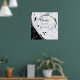 Modern Elegant Black abstract flower Silhouette on a White Marble background texture to personalize guiding your guest to your guest book.