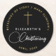 This paper coaster features a religious theme, with a stylish chic black background that beautifully contrasts with white and gold text. The word “Christening” is elegantly displayed in white calligraphy, while a minimalist yet classic gold cross symbolizes divine blessings. Customizable text options allow for the baby's name and date in clean, modern white typography. This refined fusion of timeless artistry and contemporary design is perfect for any sacred occasion. Discover the full collection for more colour variations and coordinating designs!