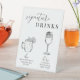 This modern, elegant wedding pedestal sign for his and hers signature drinks features a minimalist design, classic serif font, and elegant script font. Edit the names and ingredients of each drink for your wedding or event.