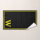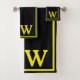 Modern Elegant Black Yellow Monogram Script Bath Towel Set