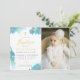 Modern Elegant Blue Baptism Photo Invitation