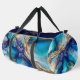 Modern Elegant Blue Gold Marble Personalized Name Duffle Bag