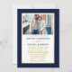 Modern Elegant Minimalist Photo Navy Blue and White Wedding Invitation. Gold Frame. Gold Script.