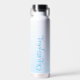 Modern Elegant Blue Script Custom Name Monogrammed Water Bottle