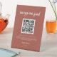 Modern elegant burnt brick Honeymoon fund QR code Pedestal Sign