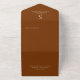 AVAILABLE WITH OR WITHOUT A QR CODE TO SCAN IN THE RSVP AREA OR WITH OR WITHOUT DINNER OPTIONS. This design is simple yet elegant, complete with the groom or bride's last initial on the outside flap. A transparent black overlay covers the photo you add.  The bottom and back are a beautiful rust. Also add a customized QR code to your invitation so that gusts can quickly access your wedding Website for details, directions, menu options, and more, or add your gift registry Web URL. Personalized All-In-One invitations are a unique combination of both a beautifully printed custom invitation with an easy to tear off perforated RSVP postcard. And they are so easy to use! You simply fold, then seal the back flap with the three included clear stickers, and mail. And when your guests receive your custom invite, they just tear the perforated RSVP Card off and drop it back in the mail to you!