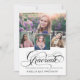 A modern graduation invitation featuring the word “graduate” on the front in stylish script calligraphy, plus 4 of your favorite senior photos. Add your own personal celebration details to the back. This is the black and white version.