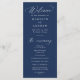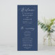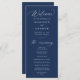 This wedding program features elegant white calligraphy on a rich navy background, creating a modern and sophisticated design that sets the tone for your ceremony. Couples can personalize the program with their names, wedding date, and ceremony details in bold white lettering, ensuring a clear and stylish presentation. The reverse side elegantly displays the names of your bridal party, adding a personal touch to this essential wedding detail. Perfect for both formal and casual weddings, this wedding program seamlessly blends simplicity and elegance, making it a timeless addition to any celebration, no matter the season.