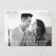 Share the excitement of your big day with our elegant photo wedding save the date postcards. Designed to highlight your horizontal engagement photo, this modern design features "Save the Date" in graceful calligraphy script, complemented by your names in bold white lettering for a contemporary touch. Below, your wedding date and location are prominently displayed, ensuring guests have all the essential details. The back of the postcard includes your return address, an additional photo, and space to share extra information, such as your wedding website. Perfect for couples seeking a stylish and practical announcement, this postcard design sets the tone for an unforgettable celebration.