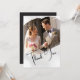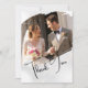 Modern simplicity. This wedding thank you card features a creative way to present your Wedding photos while thanking your friends and loved ones. Featuring your photos within creative hand painted style brush strokes with a flowing handwriting inspired script. The elegant trendy black and white design creates a timeless keepsake to cherish. This is the perfect card to express sincere thanks.