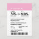 Modern Elegant Custom Bride To Be Boarding Pass Postcard